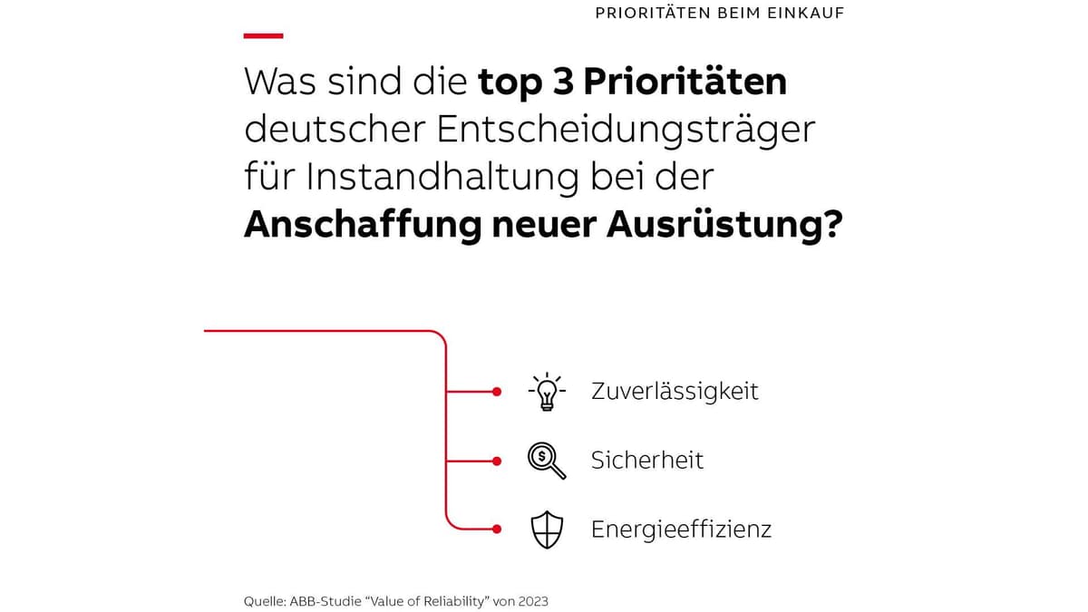 Die Ergebnisse unterstreichen die Bedeutung von Anlagenzuverlässigkeit und Wartung. Bei 92 Prozent der weltweit befragten Unternehmen konnte die Verfügbarkeit der Anlagen im vergangenen Jahr durch Wartung erhöht werden, bei 38 Prozent um mindestens ein Viertel. Drei Viertel der Befragten sind der Meinung, dass sich Zuverlässigkeit positiv auf die Reputation und die Finanzleistung ihres Unternehmens auswirkt und hilft, vertragliche Verpflichtungen zu erfüllen, Verschwendung zu vermeiden und sich Wiederholungsaufträge zu sichern. Zuverlässigkeit wurde von den Befragten als oberste Priorität bei der Anschaffung neuer Anlagen genannt.