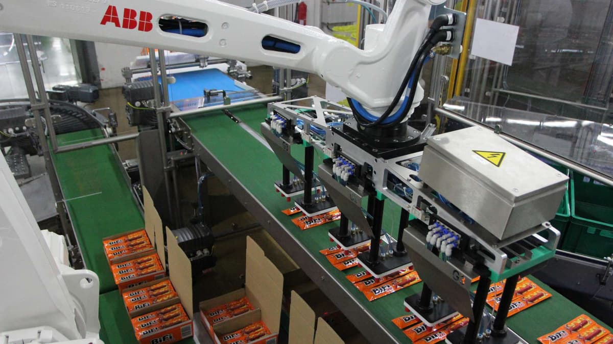 Bis zur Jahrtausendwende erfolgten in der Fleischindustrie viele Sortierprozesse noch in Handarbeit. Auch beim BiFi-Hersteller Jack Link’s sortierten noch Anfang der 2000er Jahre die Mitarbeitenden die BiFi-Würstchen an der Linie manuell und legten diese in die Mulden der Tiefziehmaschine ein. Während die Süßwarenindustrie bereits früher damit begonnen hatte, ihre Fertigungs- und Verpackungsprozesse zu automatisieren, war die Fleischindustrie etwas zurückhaltender – nicht zuletzt aufgrund der spezifischen Hygieneanforderungen an die eingesetzte Automatisierungsausrüstung und die Lösungskonzepte. Daher stellte die Inbetriebnahme der Roboter-Sortierungsanlage im Jahr 2006 einen bedeutenden Vorstoß der Automatisierung in neue hygienische Anwendungsbereiche dar.